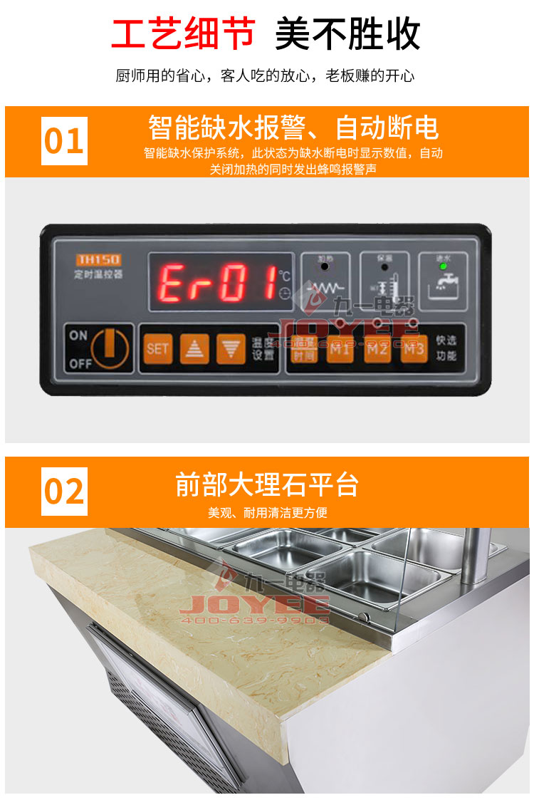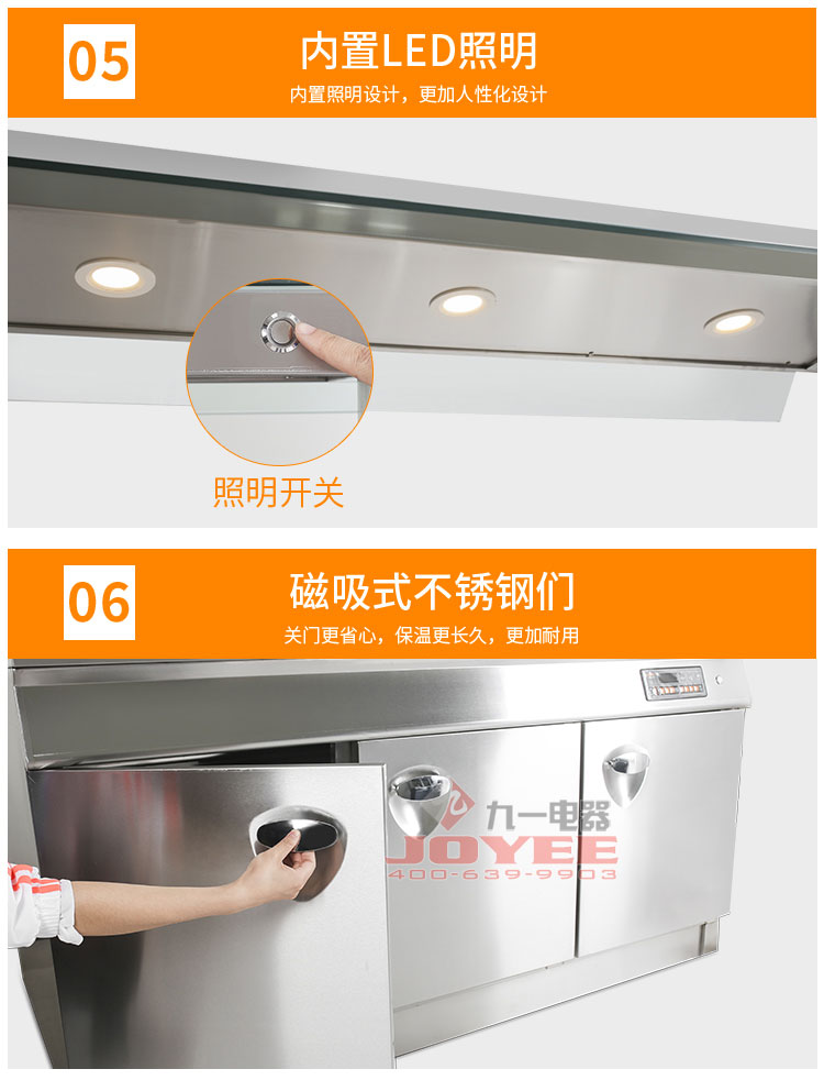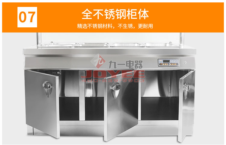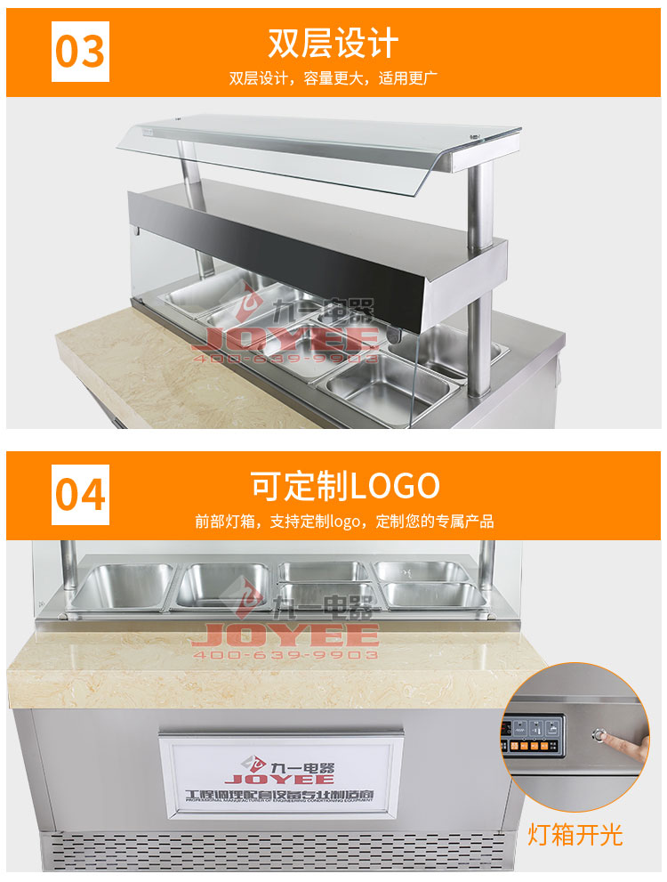 0516-83891100前部大理石平臺大氣美觀,底座裝飾燈箱可定制LOGOO,上部雙層玻璃罩設(shè)計使用更方便,內(nèi)置LED射燈展示效果更佳,全304不銹鋼柜體,厚度1.2mm板材鍛造堅固耐用!