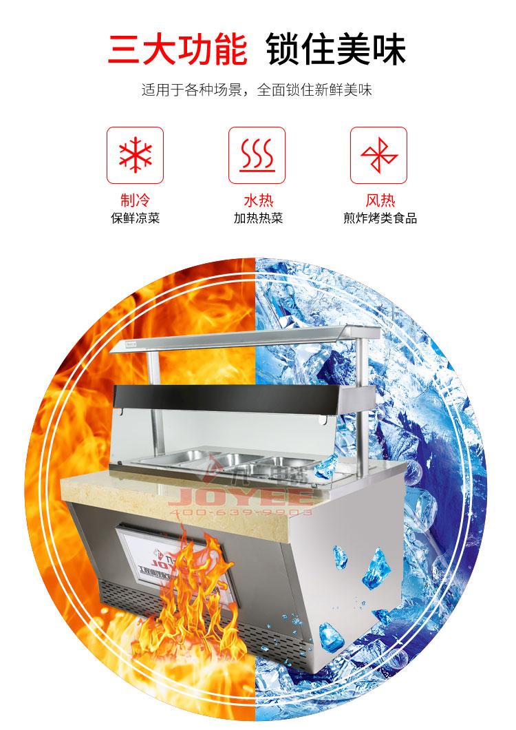 前部大理石平臺大氣美觀,底座裝飾燈箱可定制LOGOO,上部雙層玻璃罩設(shè)計使用更方便,內(nèi)置LED射燈展示效果更佳,全304不銹鋼柜體,厚度1.2mm板材鍛造堅固耐用!
