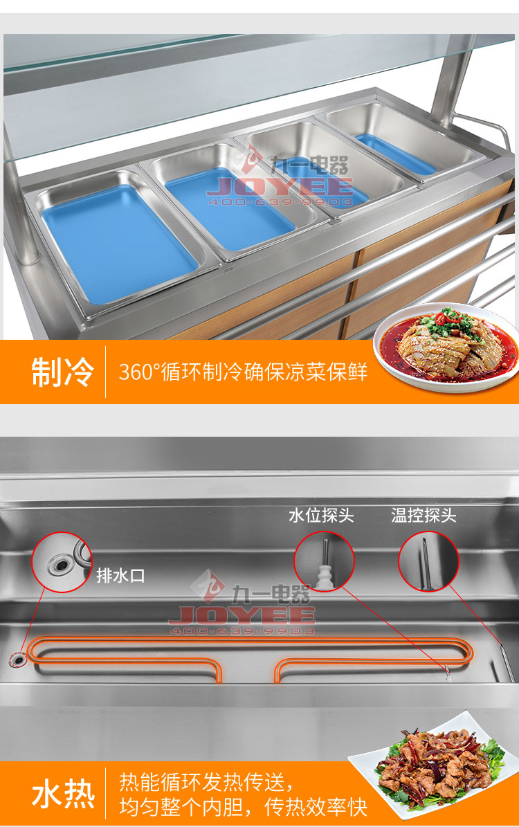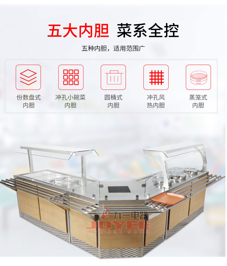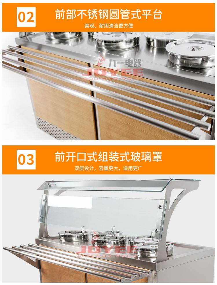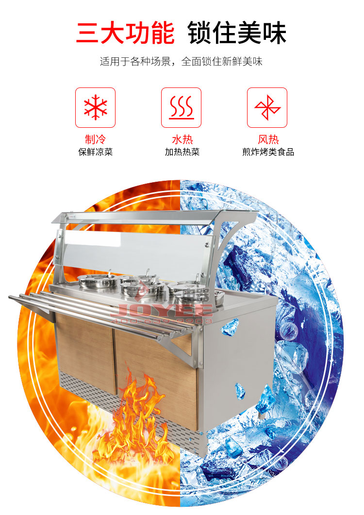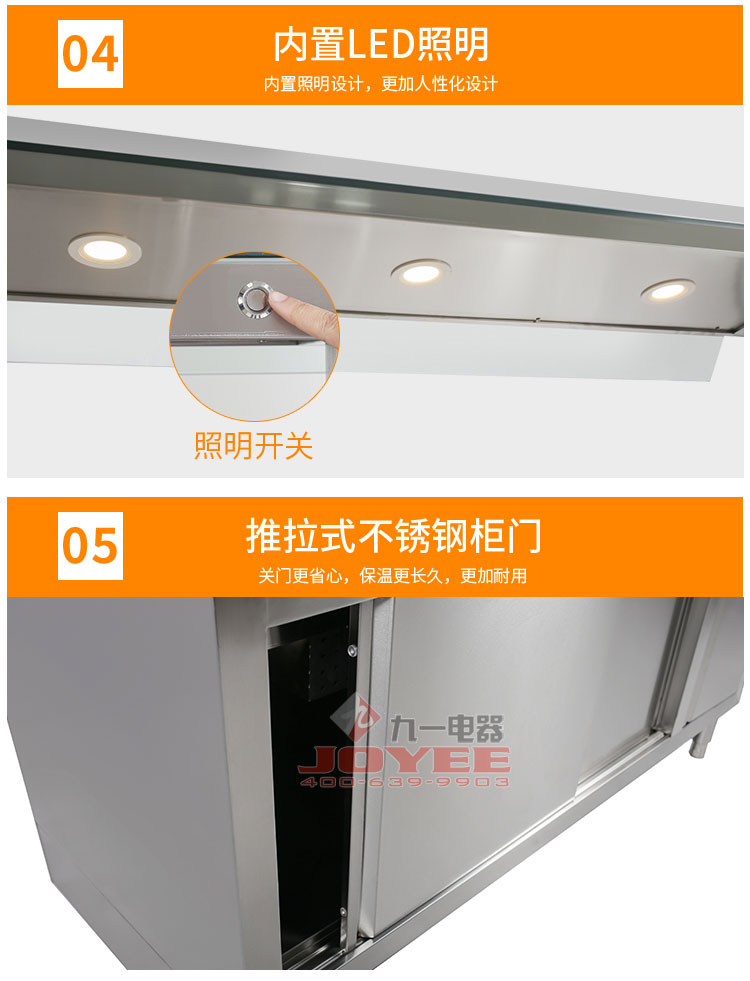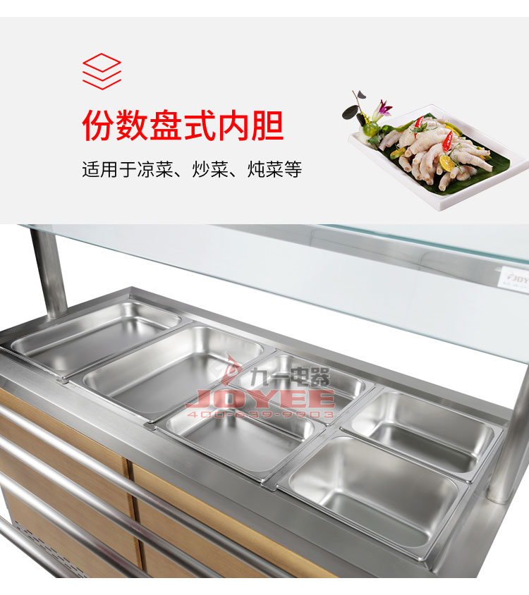 0516-83891100仿木紋裝飾板高端上檔次,前部圓管式平臺(tái)簡(jiǎn)潔大方,前開口式玻璃罩方便傳遞菜品,內(nèi)置LED射燈展示效果更佳,全304不銹鋼柜體,厚度1.2mm板材鍛造堅(jiān)固耐用!